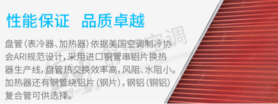 表冷段:舒源空調(diào)表冷器(http://www.dwlf.com.cn/)采用鍍鋅板材質(zhì),耐腐蝕,表面處理不易生銹,使用壽命長;采用優(yōu)質(zhì)薄壁銅管穿雙橋面優(yōu)質(zhì)鋁翅片,具有傳熱效率高,水阻力小。具有結(jié)構(gòu)緊湊、重量輕、工藝先進(jìn)、性能好、阻力低、承受壓力高等優(yōu)點(diǎn)。