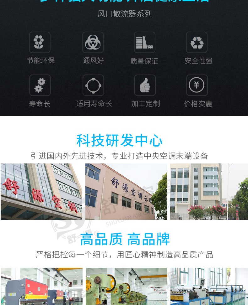 江蘇舒源空調(diào)制造有限公司生產(chǎn)“舒源”牌組合式空調(diào)機組、柜式空調(diào)機組、風(fēng)機盤管和各種規(guī)格通風(fēng)配件、自動控制柜、空氣凈化及防火閥消聲類產(chǎn)品,亦承接空調(diào)通風(fēng)工程、凈化工程的設(shè)計、制作安裝業(yè)務(wù),并可根據(jù)用戶需要設(shè)計制造非標(biāo)產(chǎn)品。